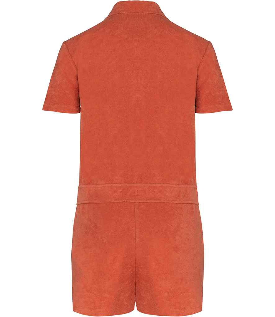 Native Spirit Ladies Terry Towel Short Overall in Soft, Comfortable Fabric for Everyday Wear - Sweet Pomelo / XS is backordered and will ship as soon as it is back in stock.