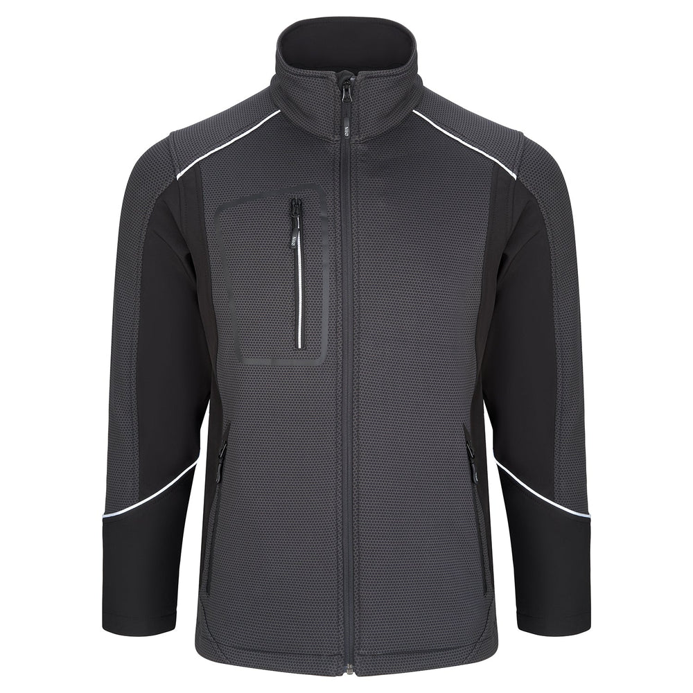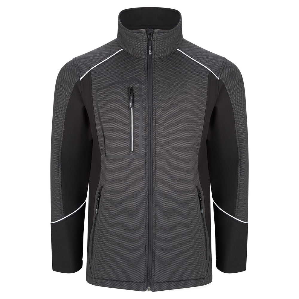 Orn Shearwater Softshell - BK Body - BK Side - GR Print / 2XL is backordered and will ship as soon as it is back in stock.