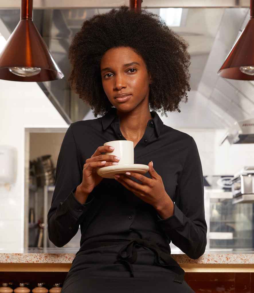 - Curved hem adds a modern touch, perfect for both tucked and untucked styling.
