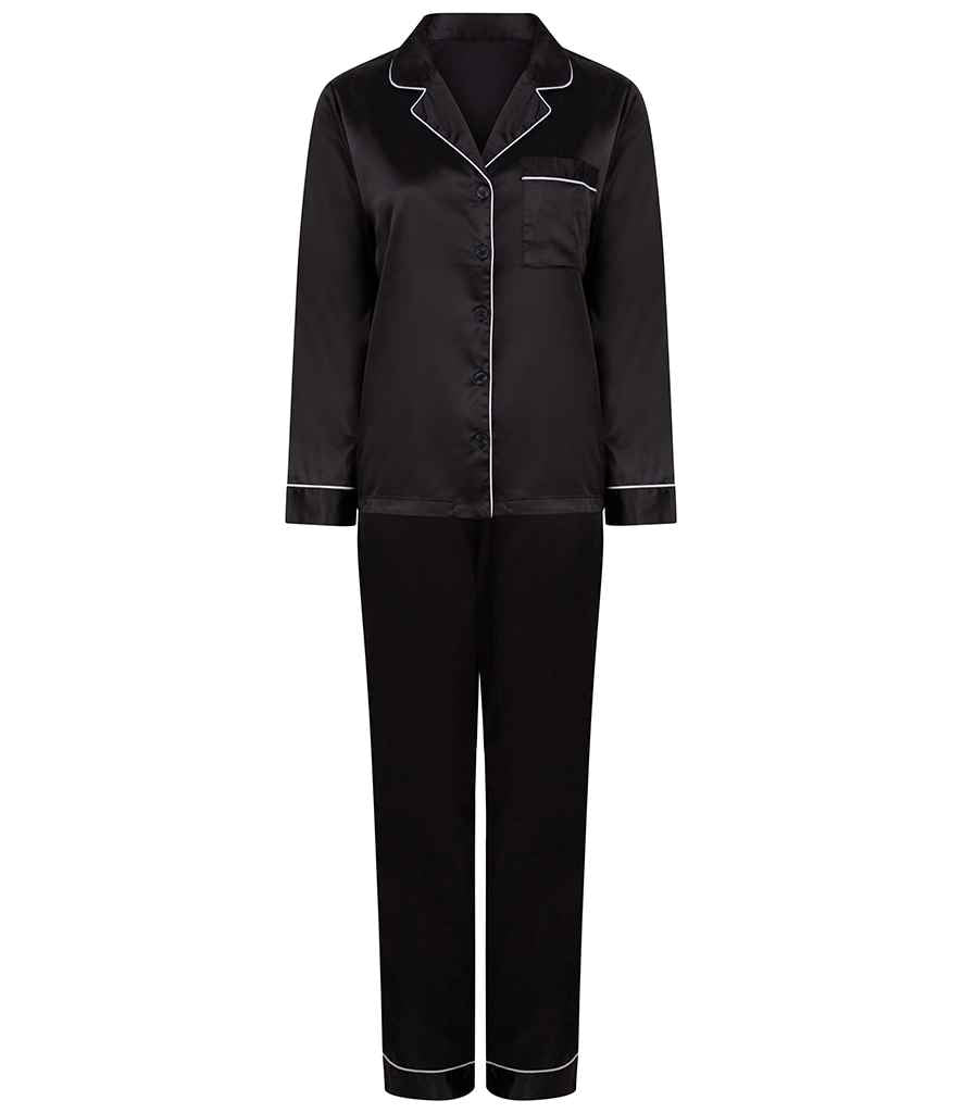 Towel City Ladies Satin Long PJ's | Black